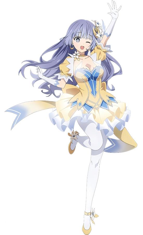 紫色的眼眸在迷离的光线下流转,精准地锁定了第一排那个粉色头发的绝色少女,脸上带着无可挑剔的偶像式微笑,步伐轻盈,径直走到了爱莉希雅面前。